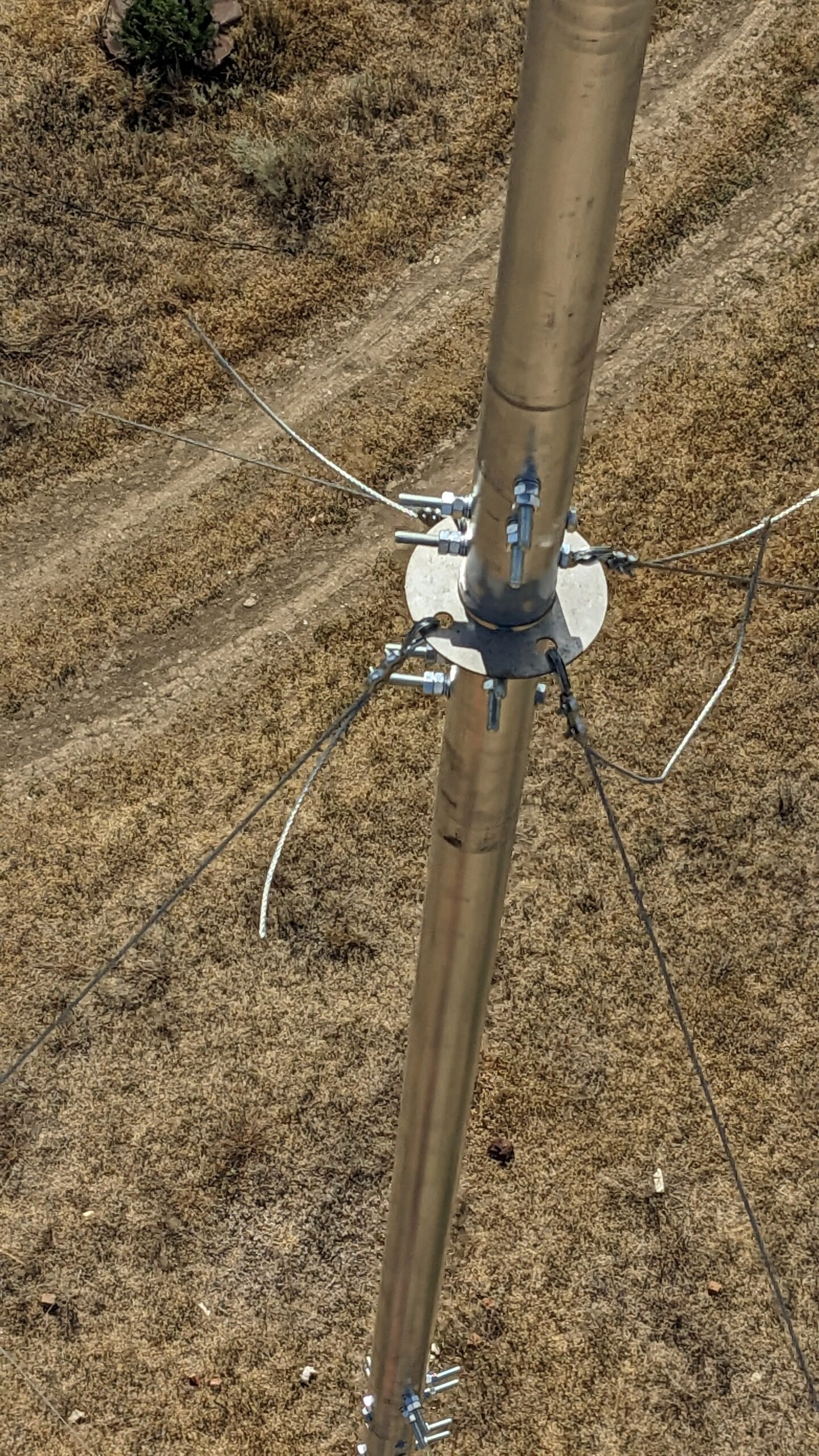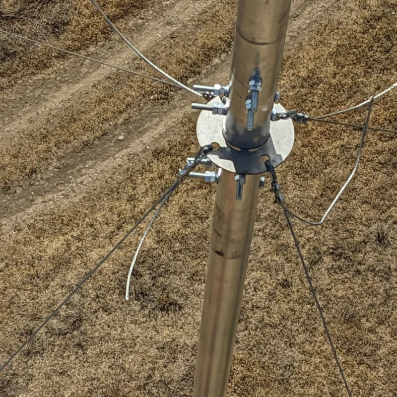 Устойчивость мачты для антенн в вертикальном положении обеспечивается системой оттяжек (в комплект не входят), которые крепятся к мачте через кольцо под растяжки с одной стороны, а с другой стороны прикрепляются к элементам специального крепежа (крюкам, петлям), вмонтированных в кровлю, стены, землю и т.п.